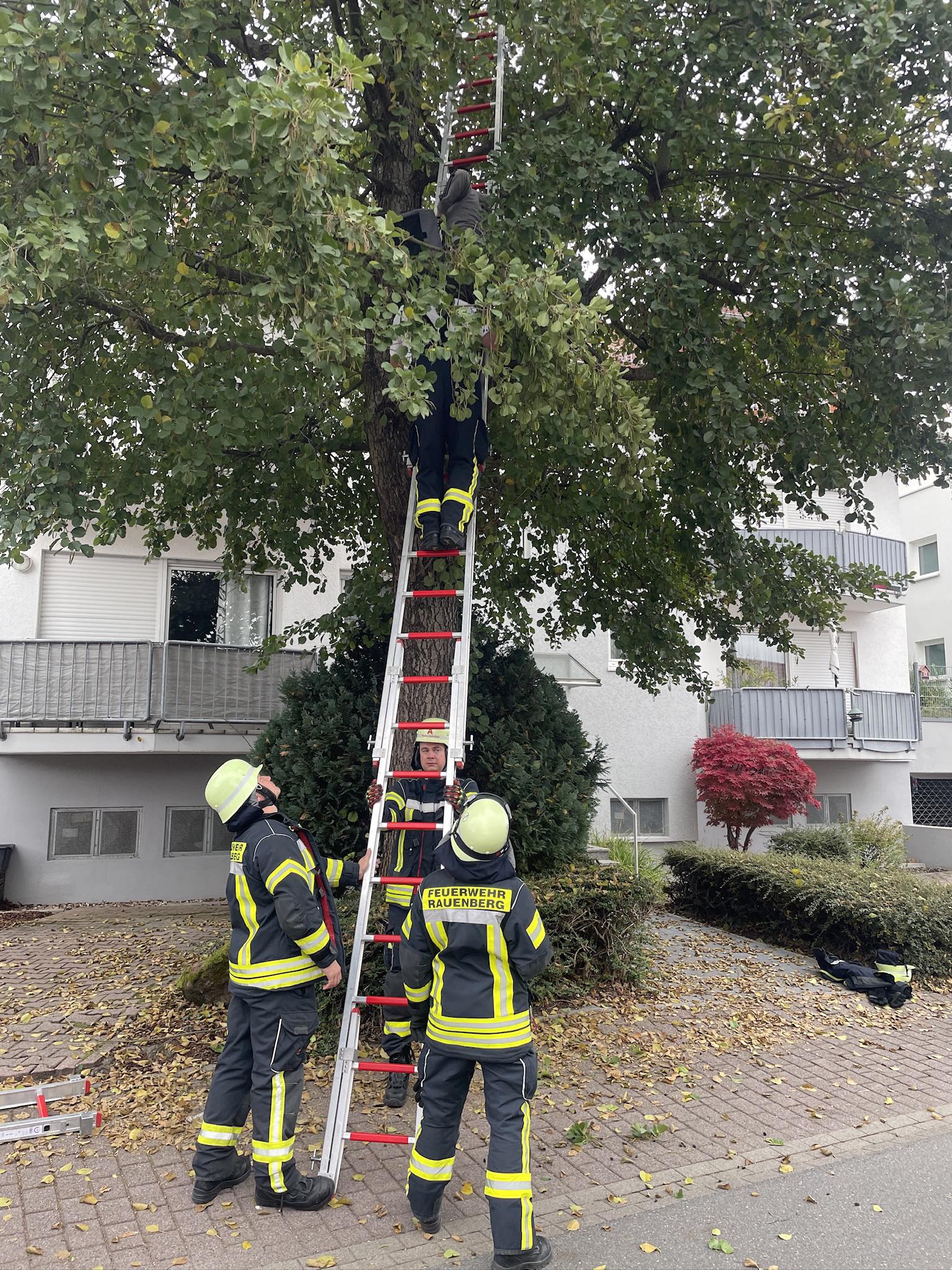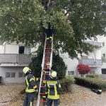 Am Montag, den 13.10.2025, wurden wir gegen 13:52 Uhr zu einer Tierrettung alarmiert. Eine Katze war ca. 6 Meter auf einen Baum hinauf geklettert und traute sich augenscheinlich nicht mehr selbst hinab. Die Feuerwehr stellte eine Leiter über welche die Besitzerin selbst die Katze mittels einer Tierbox rettete.