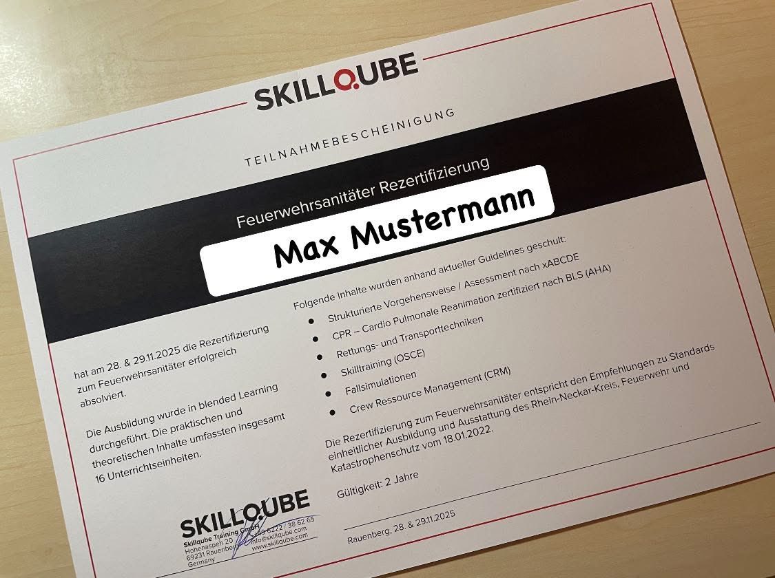 Am 28. und 29.11.2025 nahmen unsere Feuerwehrsanitäter bei Skillqube Training an einer umfangreichen Fortbildung teil. Im Mittelpunkt standen wichtige Themen aus der Notfallmedizin: