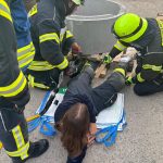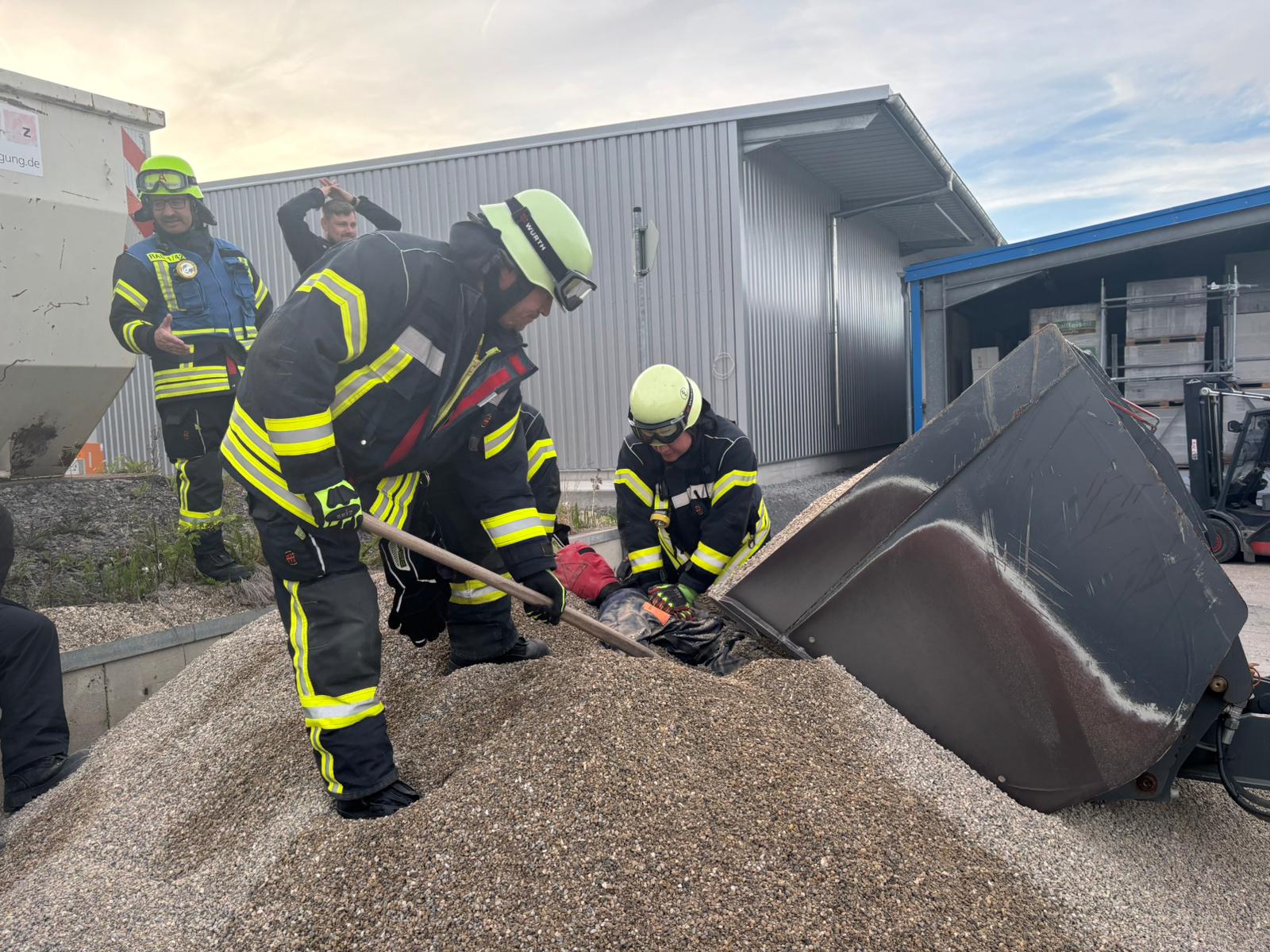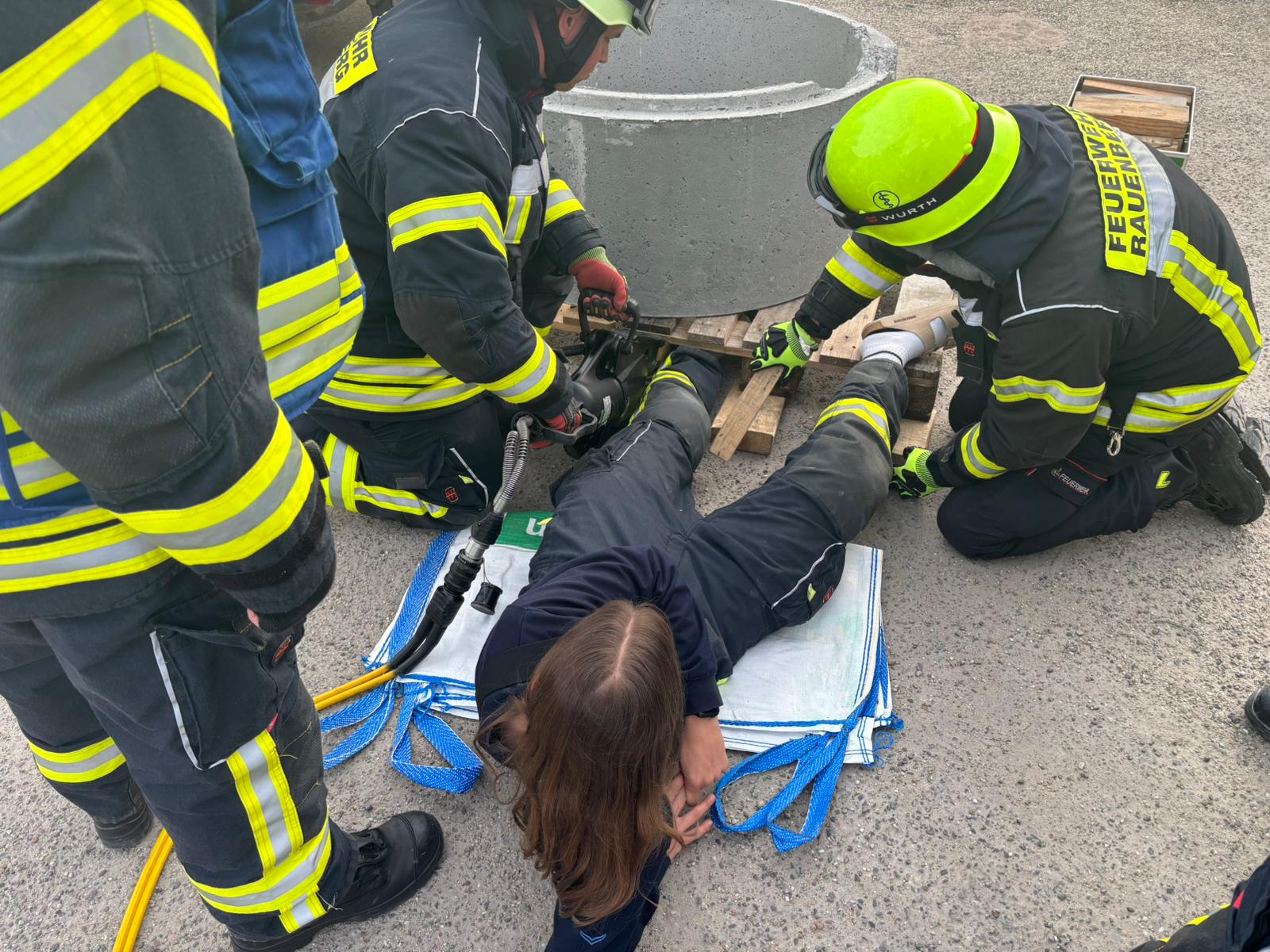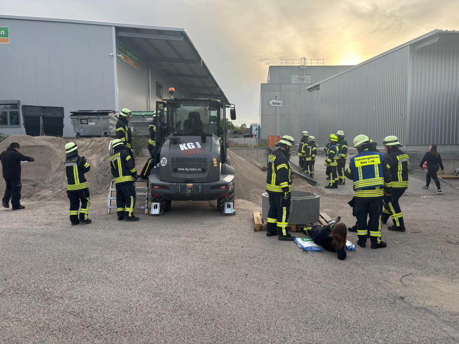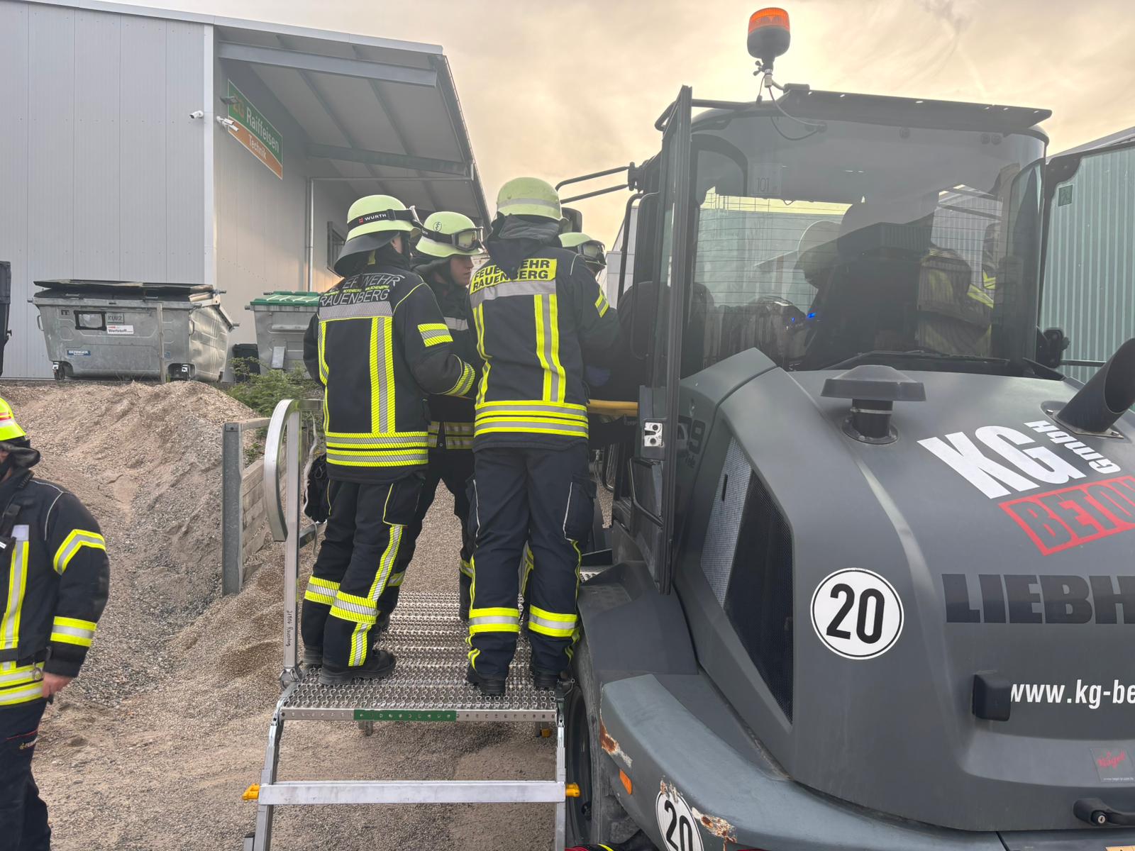 Parallel dazu kümmerte sich ein weiterer Trupp um eine bewusstlose Person in einem Baufahrzeug. Unter beengten Platzverhältnissen musste diese zügig, aber vorsichtig aus der Kabine gerettet und erstversorgt werden.
